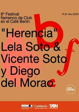 The 8th Flamenco Club Festival at Café Berlín brings together three essential names in flamenco: Lela Soto, Vicente Soto “Sordera” and Diego del Morao. Their show Herencia celebrates the legacy of two historic flamenco lineages —the Sorderas and the Moraos— in a night where tradition comes alive with unmatched power.